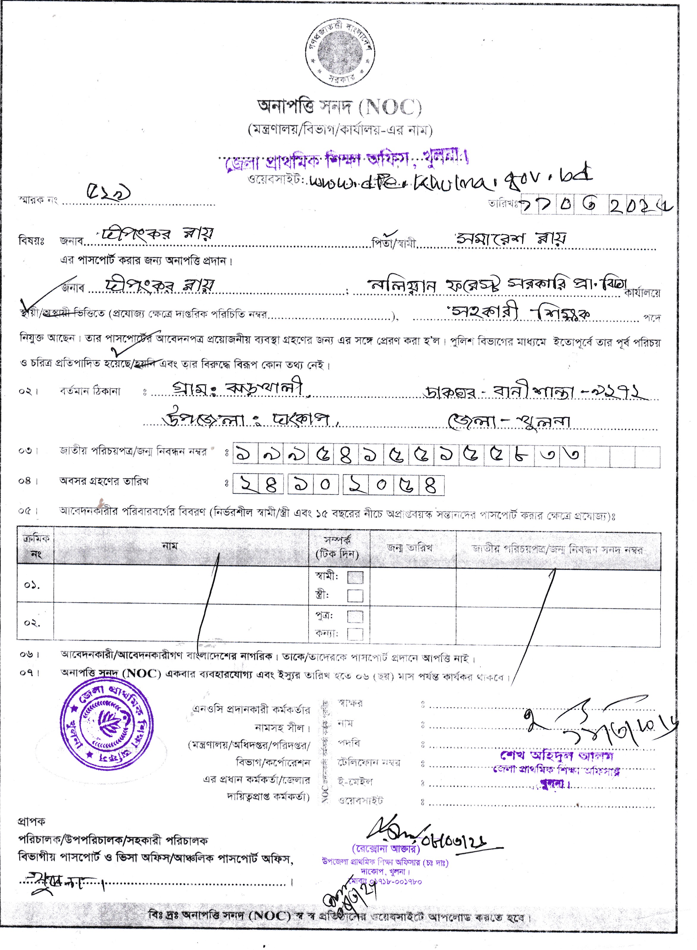 | ৩ | দীপংকর রায় এনওসি | | ১৫-০৩-২০২৬ | দেখুন | |